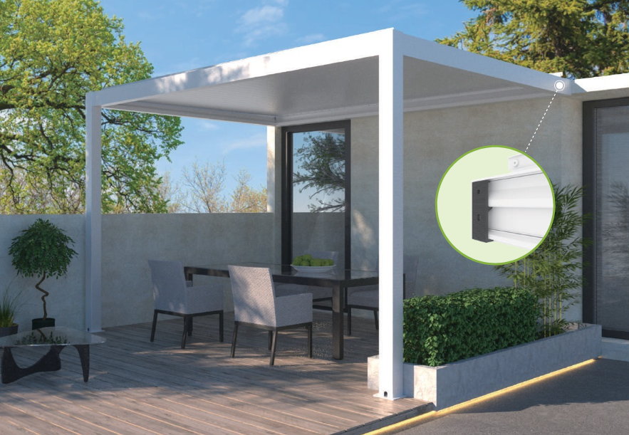 Riječ je o 100% vodonepropusnoj vanjskoj krovnoj pergoli sa sustavom odvodnje i mogućnošću ugradnje LED rasvjete. S Lux bioklimatskom pergolom i njenim podesivim letvicama možete kontrolirati i podešavati koliko sunca, hlada i svjetla želite u svom domu.